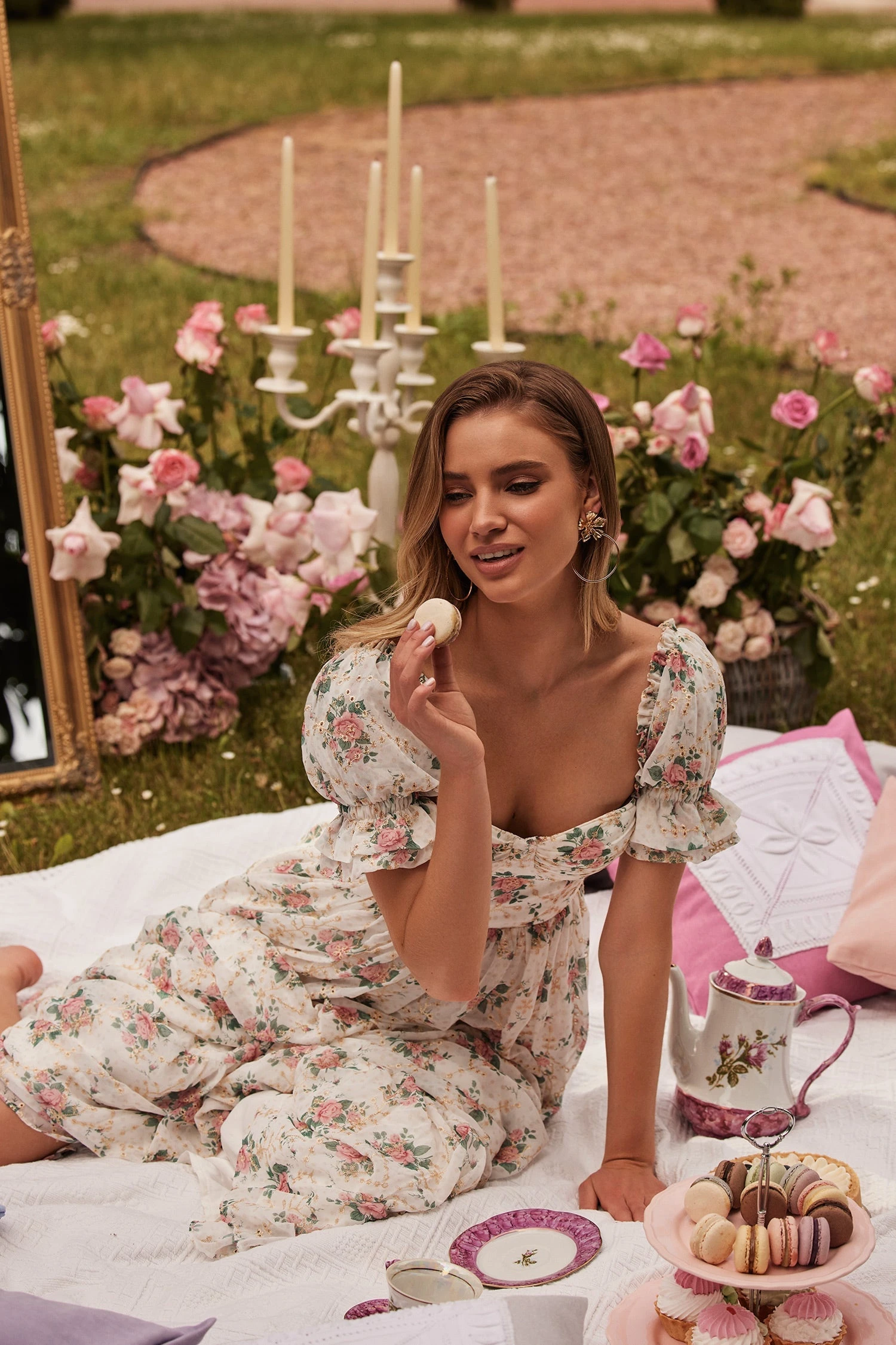 The Calida Dress is the perfect summer style. Designed with ruched cups with a sweetheart neckline, short puff sleeves and a flowing a-line silhouette. Prepped with a floral pattern in a light chiffon fabric, the Calida Dress is a timeless wardrobe essential.