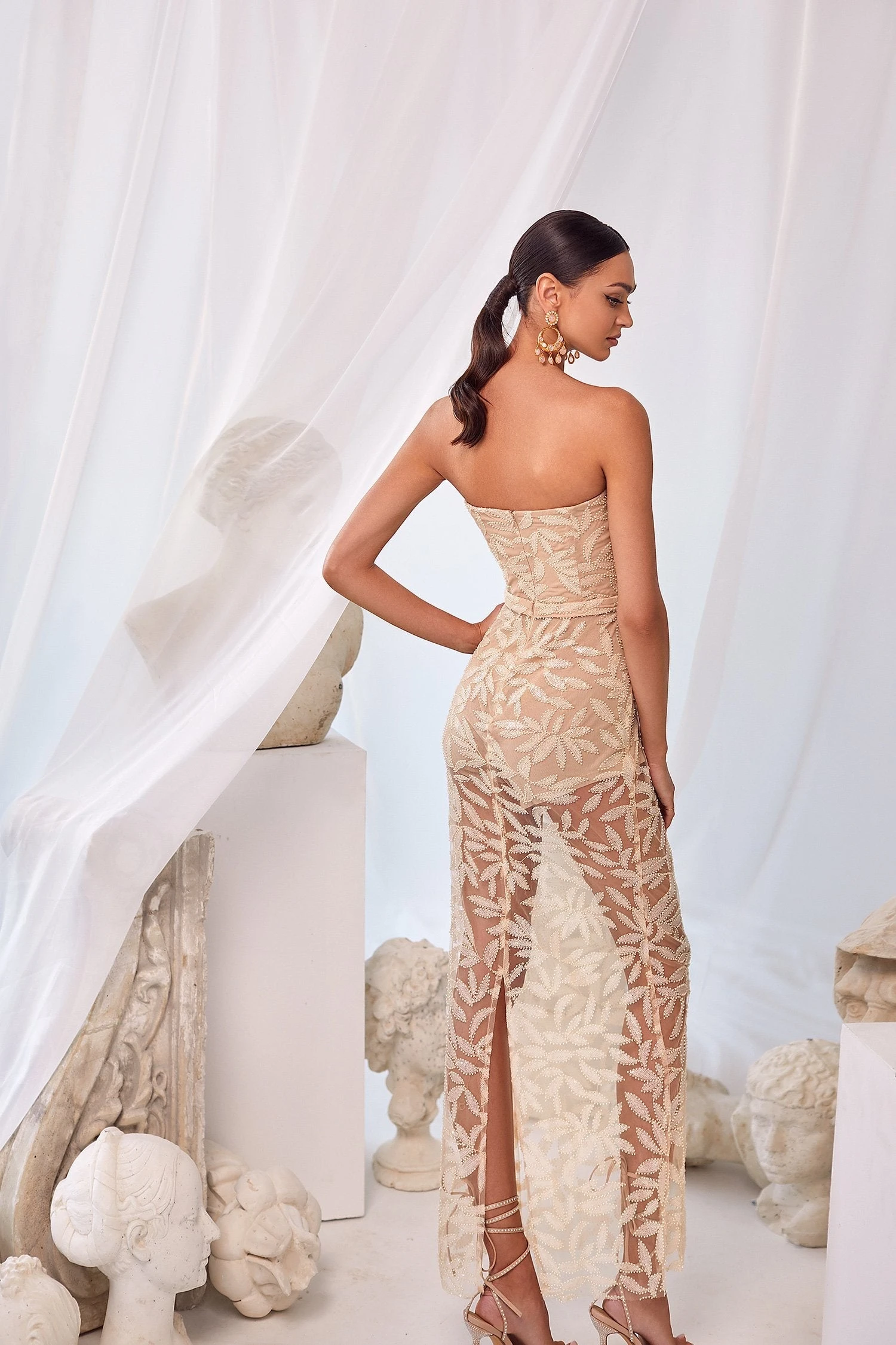 The Mia Dress brings an essence of femininity to your formal wear. This chic design was crafted with a classic strapless neckline, intricate detailing in the beaded sequin fabric, and a straight-fitted silhouette. Romantic and alluring, the Mia Dress will leave a lasting impression.